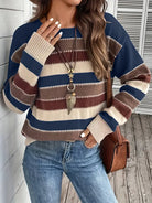Ajoutez une touche vintage et chaleureuse à votre look quotidien avec le pull en tricot à rayures Remmy. Ses teintes terreuses mélangées à des couleurs saisonnières audacieuses offrent un style décontracté tout en assurant confort et élégance — idéal pour le superposition tout au long de l'année.